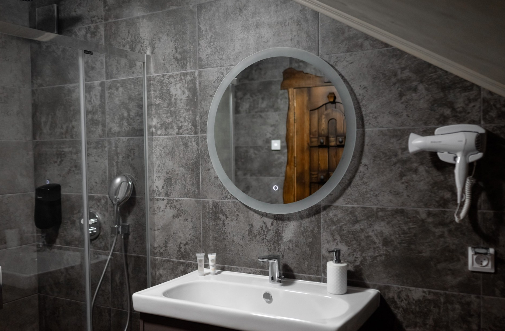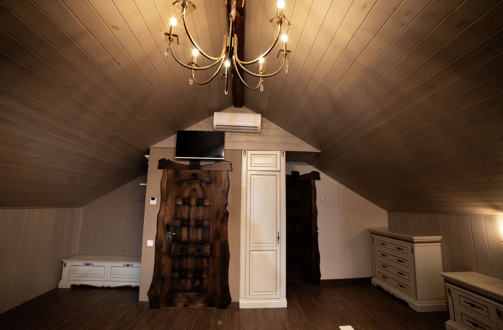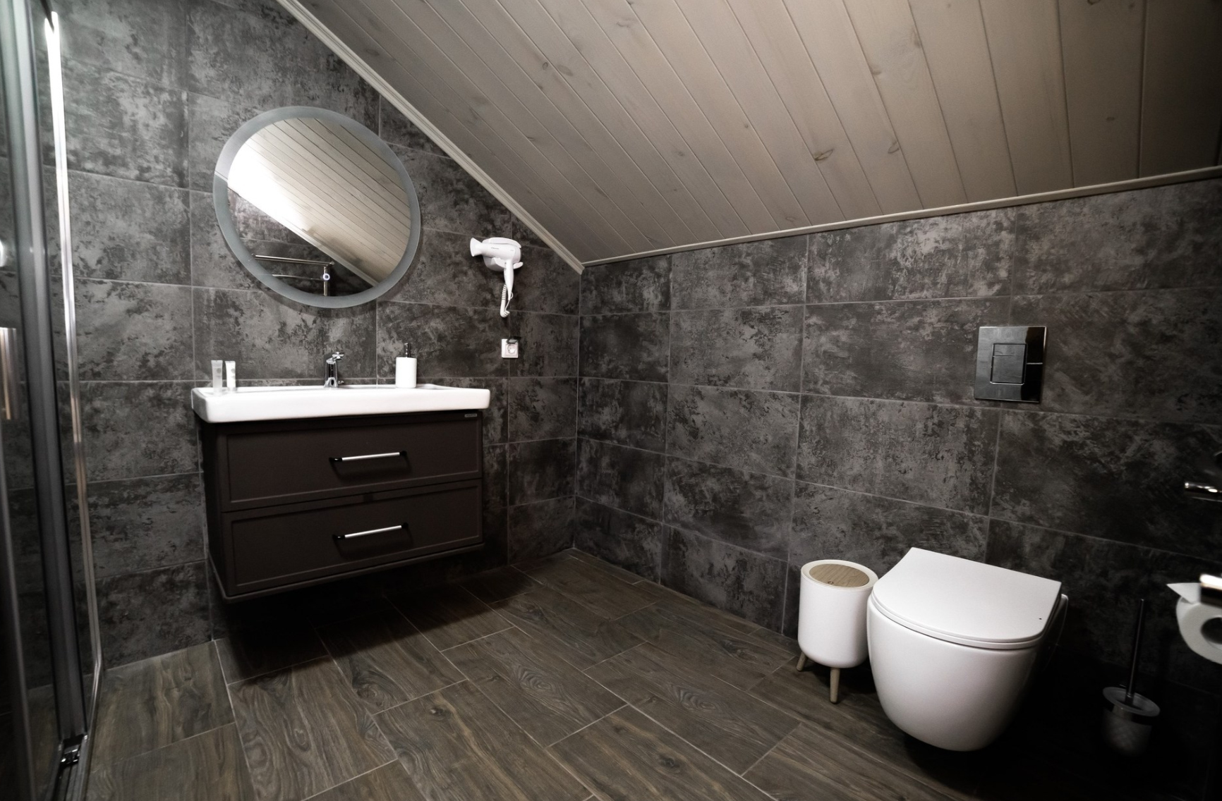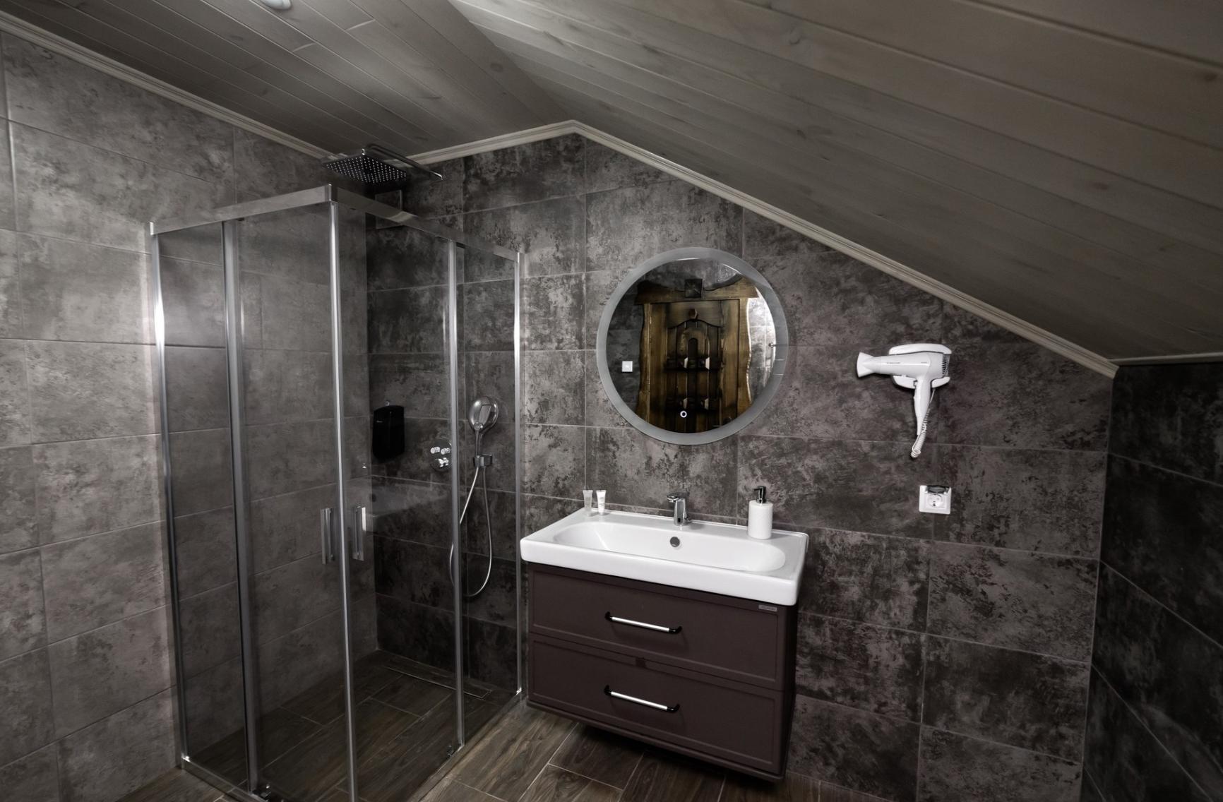 Двухкомнатный люкс высокой комфортности готовы к приёму самых взыскательных гостей. Отделаны экологически чистыми материалами , мебелью из дуба. Их отличает элегантный авторский дизайн. Панорамные окна и отдельный выход на лоджию, свидом на речку! В лобби вы получаете свободный доступ к кухне с полным набором кухонной техники , посуды и приборов! Площадь номера 40м2.
