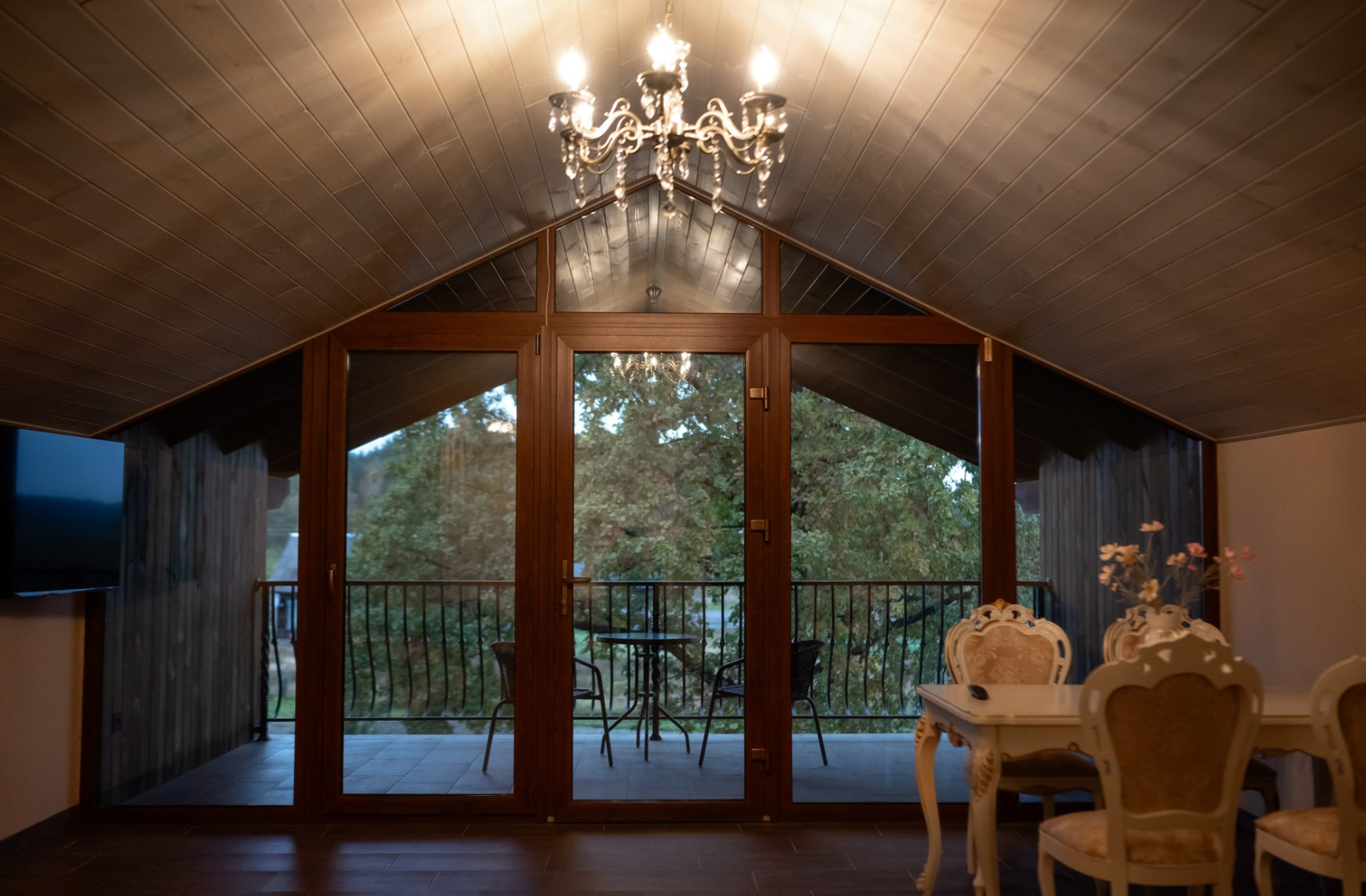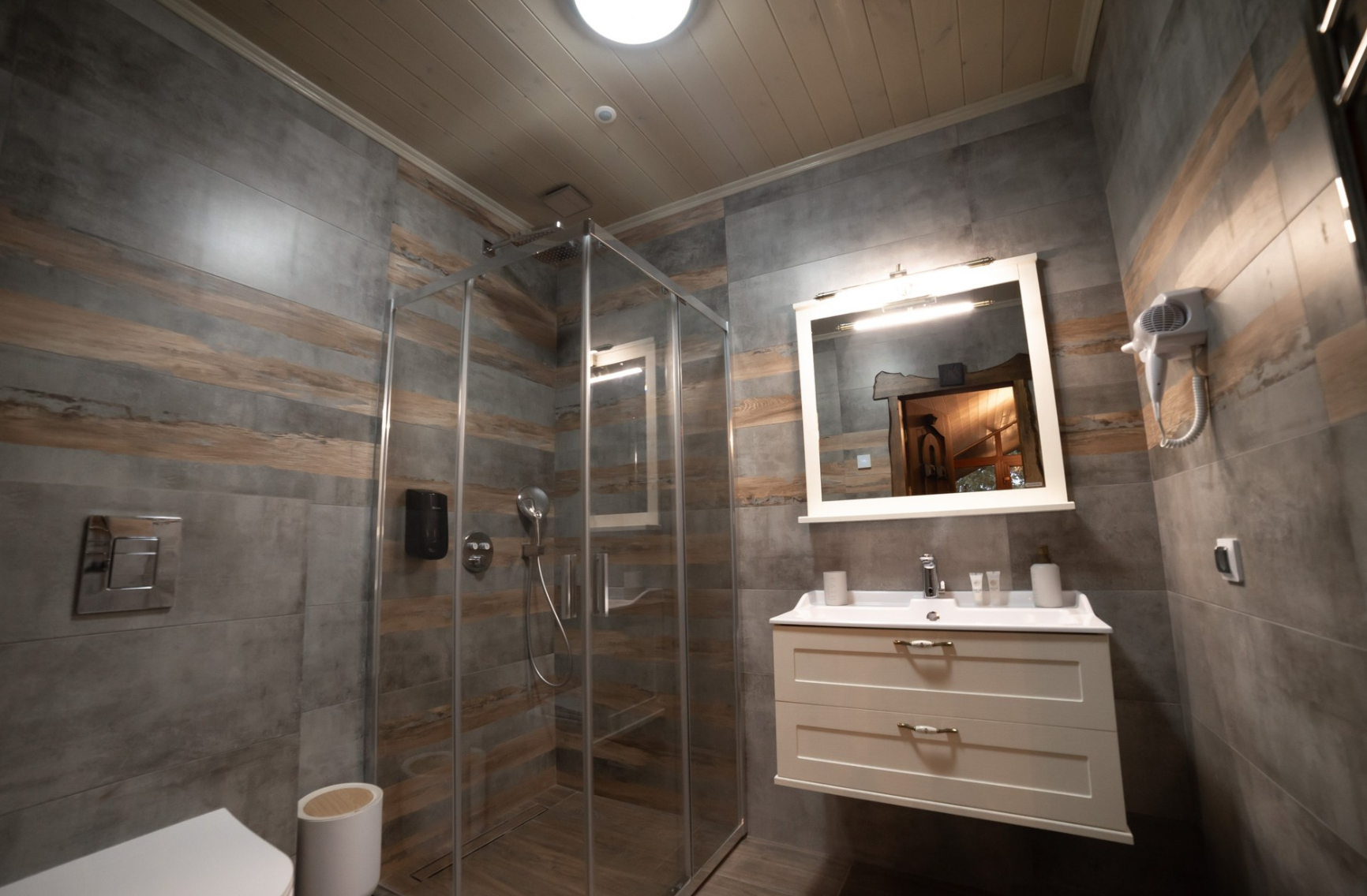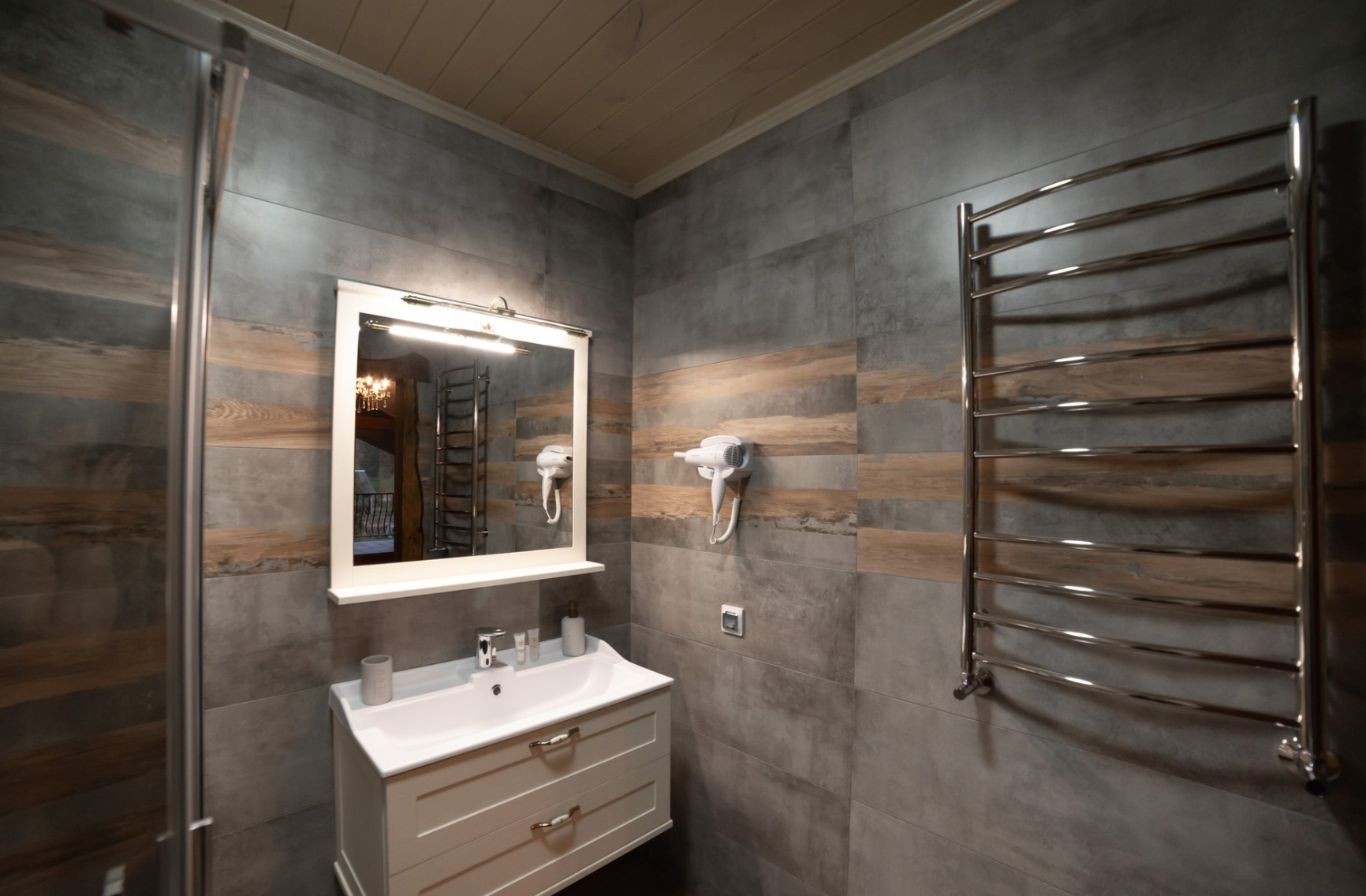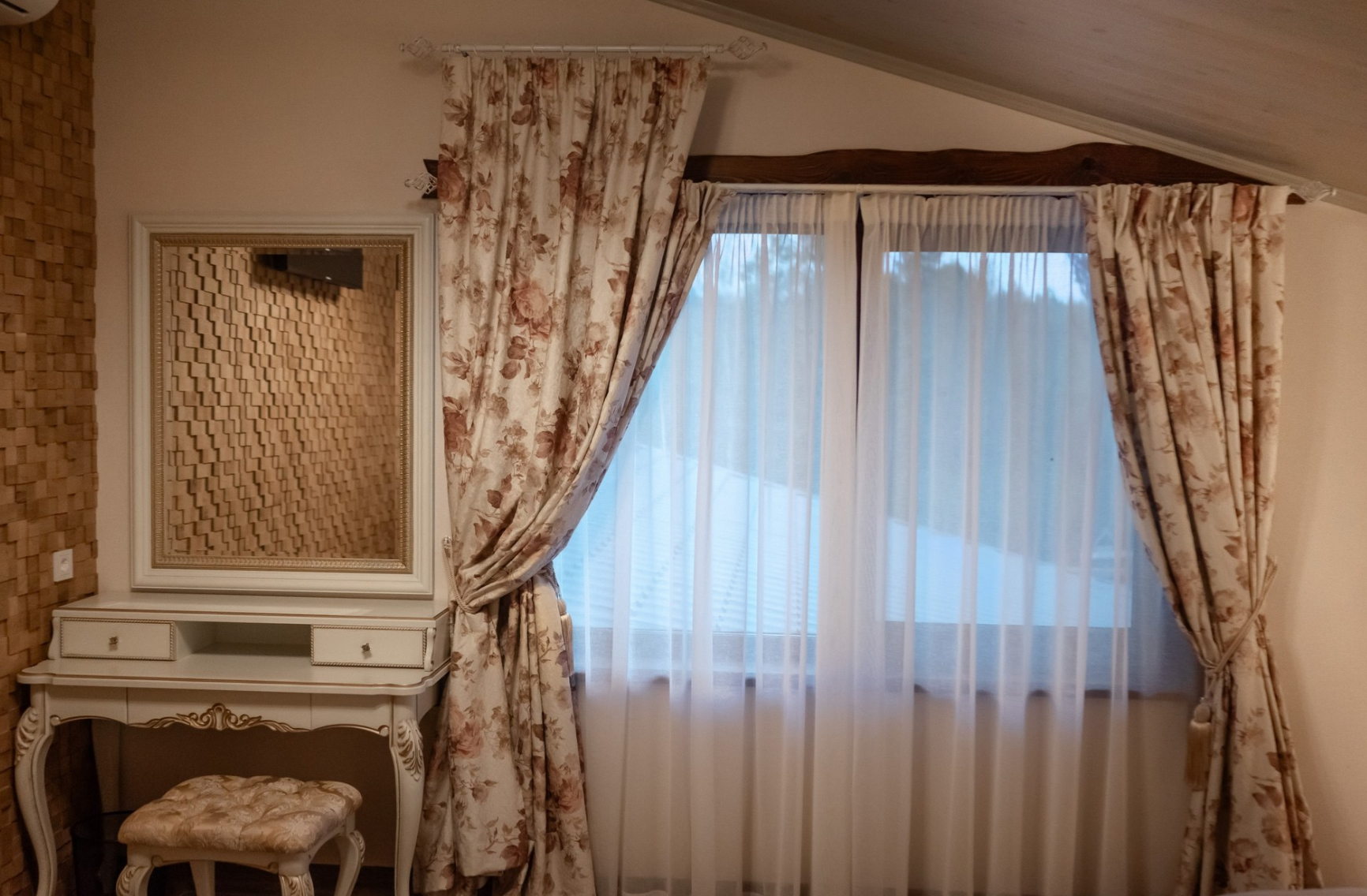 Двухкомнатный люкс высокой комфортности готовы к приёму самых взыскательных гостей. Отделаны экологически чистыми материалами , мебелью из дуба. Их отличает элегантный авторский дизайн. Панорамные окна и отдельный выход на лоджию, свидом на речку! В лобби вы получаете свободный доступ к кухне с полным набором кухонной техники , посуды и приборов! Площадь номера 73м2.